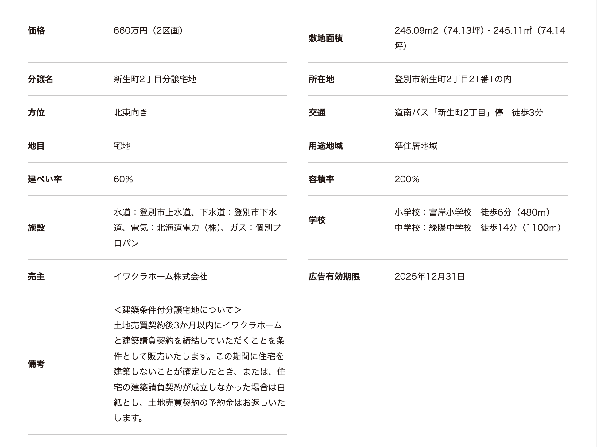 登別市内で利便性と住環境を兼ね備えた分譲宅地、2区画限定で販売中!