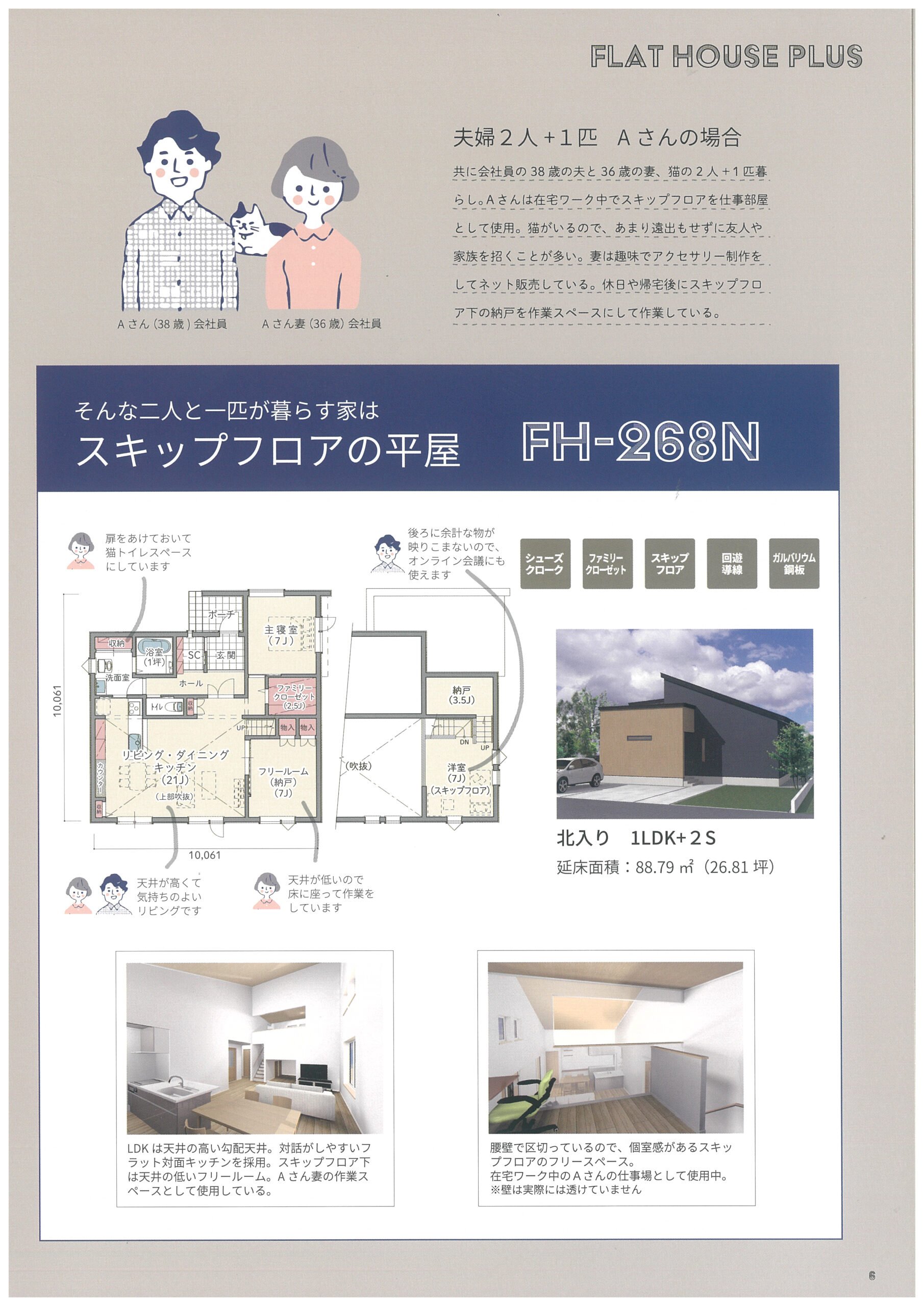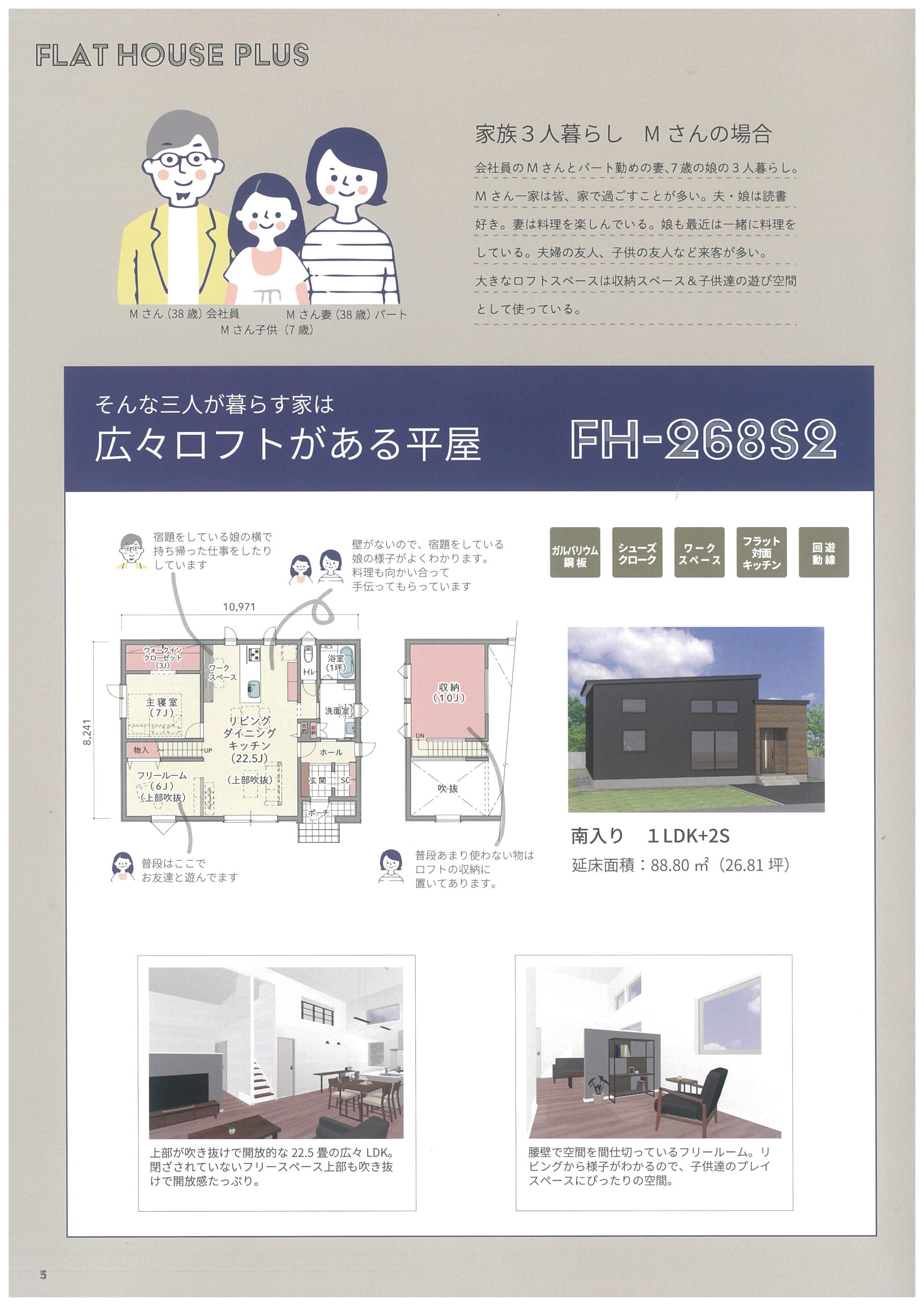 従来の平屋住宅にスキップフロアやロフトを取り入れた「フラットハウスプラス」。